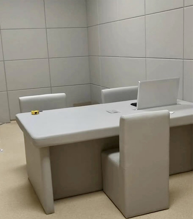 星美建材的防撞阻燃吸音材料專業(yè)為派出所審訊室、公安局辦案區(qū)、派出所談話室、詢問(wèn)室、羈押室、訊問(wèn)室、看守所關(guān)押室、反貪局、海關(guān)緝私局、交警大隊(duì)訊問(wèn)室、醒酒室、特審室、信息采集室、辨認(rèn)室、紀(jì)委審查室、禁毒支隊(duì)、戒毒所、拘留所等執(zhí)法辦案場(chǎng)所相關(guān)部門(mén)量身打造集防撞、阻燃、吸音為一體的防自殘、防磕碰的保護(hù)性墻面,能很好保護(hù)嫌疑人出現(xiàn)自殘、撞墻等行為。