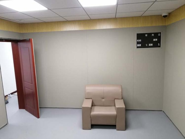 為防止被談話人以頭撞墻產(chǎn)生意外,墻面應(yīng)用厚度大于17MM阻燃B1級(jí)防撞軟包材料進(jìn)行包裝,不允許意外事件的發(fā)生??紤]到可能采取留置措施,室內(nèi)還需要配備隱蔽式全軟包側(cè)翻床。